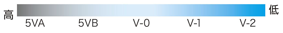 アメリカの保険機関規格UL94による樹脂の難燃性レベルを表します。 |